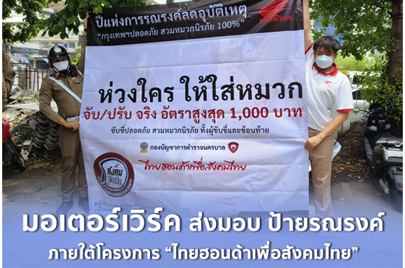 มอเตอร์เวิร์ค มอบป้ายจราจรให้แก่ สน.สุทธิสาร ภายใต้โครงการ “ไทยฮอนด้าเพื่อสังคมไทย” สำหรับสนับสนุน รณรงค์ลดอุบัติเหตุ เพื่อความปลอดภัยบนท้องถนน กรุงเทพฯ ห่วงใคร ให้ใส่หมวกกันน็อค คาดเข็มขัดนิรภัยทุกครั้งขณะขับขี่ ไม่ใช่โทรศัพท์ขณะขับขี่ หรือ ติดไฟแดง มอเตอร์เวิร์คขอให้ทุกท่านขับขี่ปลอดภัย สวมหมวกนิรภัย ทั้งผู้ขับขี่และซ้อนท้าย กรุงเทพปลอดภัย สวมหมวกนิรภัย 100%