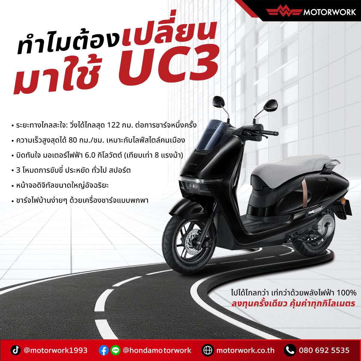แนะนำมอเตอร์ไซค์ไฟฟ้า UC3 อีกหนึ่งตัวเลือกสำหรับการใช้งานในเมือง