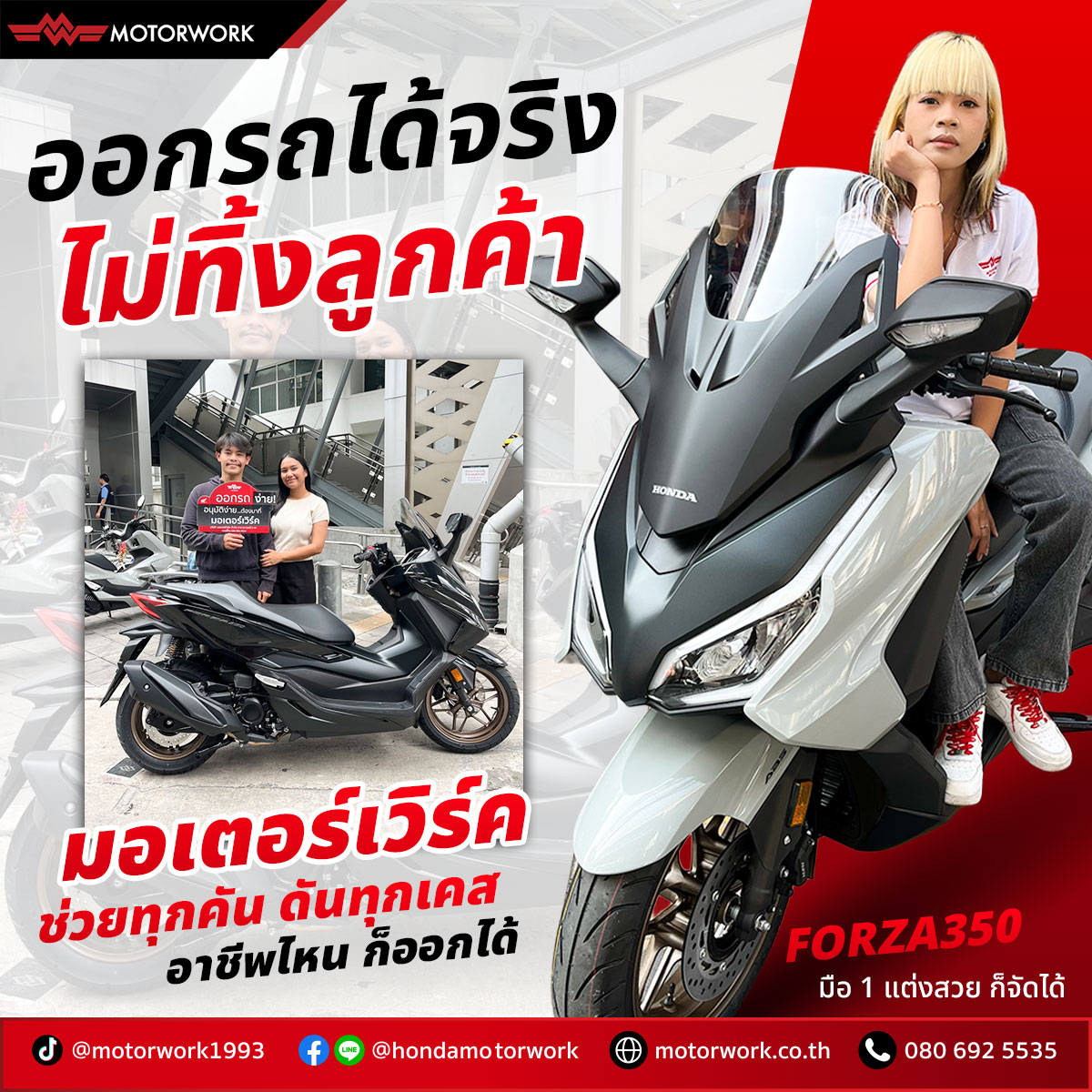 สิ่งเหล่านี้จะช่วยให้คุณตัดสินใจได้ง่ายขึ้น และได้รถที่เหมาะกับตัวเองจริง ๆ ค่ะ ที่มอเตอร์เวิร์ค เราไม่ได้อยากให้คุณได้แค่รถคันหนึ่ง แต่เราอยากให้คุณได้รถที่ “เหมาะกับชีวิตจริง” และพร้อมพาคุณออกไปสร้างประสบการณ์ดี ๆ ได้จริง และถ้าคุณยังไม่แน่ใจว่า FORZA350 หรือ ADV350 แบบไหนจะเหมาะกับคุณ ลองแวะเข้ามาคุยกันก่อนได้เลยนะคะ อย่างน้อยคุณจะได้คำตอบที่ชัดขึ้น และมีคนช่วยดูให้แบบตรงไปตรงมาค่ะ